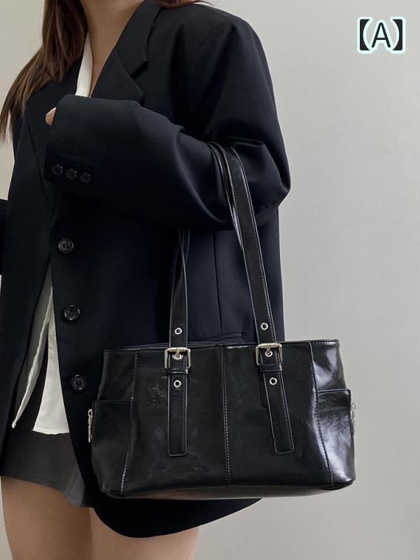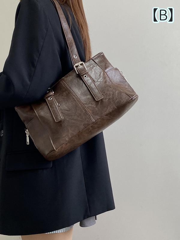 スクールバッグ 合皮 ブラウン ブラック かっこいい サブバッグ 高校生 女子高生 レトロ 韓国系 ヴィンテージ風 スクエア型 通学 学校 レザー バック カバン 黒 茶色 無地 ベルト トート 肩がけ ショルダー クール こなれ感 ロック 革バッグ