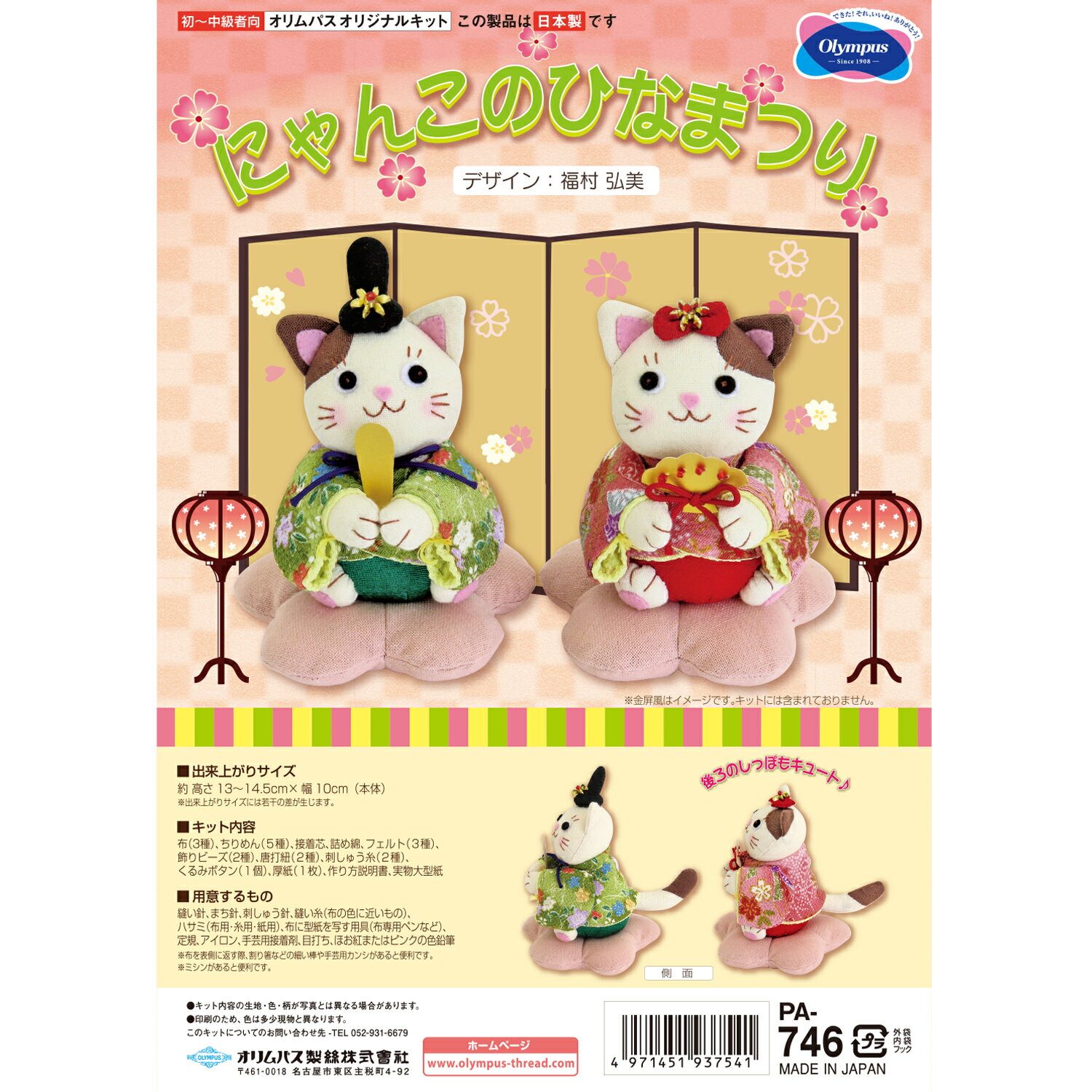 ■ひなまつりキット■ ◆PA-746 にゃんこのひなまつり◆ 飾って嬉しい、作って楽しい、かわいいひなまつりのキットです。 縫い針、まち針、刺しゅう針、縫い糸(布の色に近いもの)、ハサミ(布用・糸用・紙用)、布に型紙を写す用具(布専用ペンなど)、定規、アイロン、手芸用接着剤、目打ち、ほお紅またはピンクの色鉛筆 ※布を表側に返す際、割り箸などの細い棒や手芸用鉗子があると便利です。 ※ミシンがあると便利です。 <備考> 生地・色・柄等、キット内容は一部変更する場合があります。 柄の出方は異なる場合がございます。 出来上がりサイズには、若干の差が生じます。 難易度:初級〜中級 ◆在庫の都合上、メーカー発注が必要な場合があります。その場合、予定より配送にお時間いただく場合がありますのであらかじめご了承ください。 ◆画像やモニターによって実際の色合いと異なる場合があります。 ◆ご注文数量や梱包サイズにより配送方法のご希望に添えない場合があります。 ◆ご購入数により配送料金が割増になる場合があります。その場合別途メールでご確認させていただきます。 ■ひなまつりキット■ ◆キット内容 :布(3種)、ちりめん(5種)、接着芯、詰め綿、フェルト(3種)、飾りビーズ(3種)、唐打紐(2種)、刺しゅう糸(2種)、くるみボタン(1個)、厚紙(1枚)、作り方説明書、実物大型紙 ◆出来上がりサイズ:約 高さ13〜14.5cm×幅10cm(本体) ◆デザイン :福村弘美 ◆品番 :PA-746 ◆メーカー :オリムパス/OLYMPUS ◆こちらの商品ページは1個単位での販売です。 手芸の丸十はお客様の手作りのお時間を少しでも楽しいものにしていただけるよう、お手伝いさせていただきます。手芸用品 服飾用品 生地 毛糸 雑貨 ソーイング レシピ 編み図 パターン 刺しゅう 手作りキット レジン アクセサリー ぬいぐるみ 編みぐるみ 手づくり プレゼント ベビー用品 入園入学 オーガニック素材