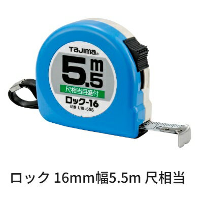 タジマツールロック 16mm幅 5.5m L16-55BL(メートル目盛)L1655SBL(尺相当目盛付)ロックタイプ スチールテープ