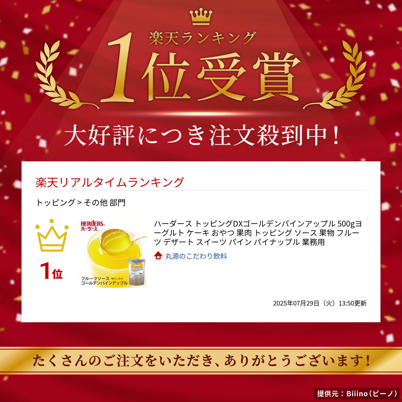 ハーダースDXトッピングは果実本来の質感にこだわった、贅沢なトッピング。深みのある味わいは、デザートの高級感を一層引き立てます。こちらの商品は甘みがしっかりある商品です。 ゴールデンパインアップル 53.0° 40% 果汁