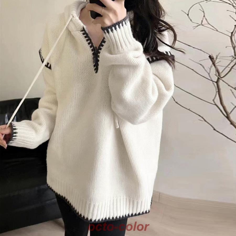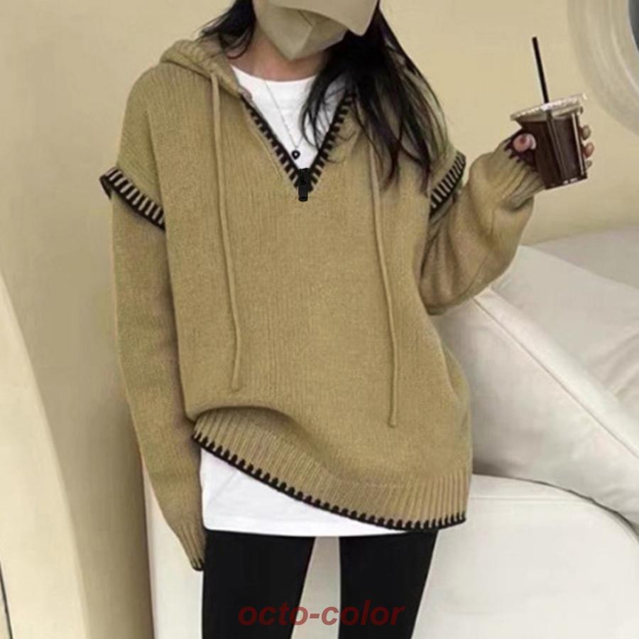 フード付きニットパーカー韓国ファッション