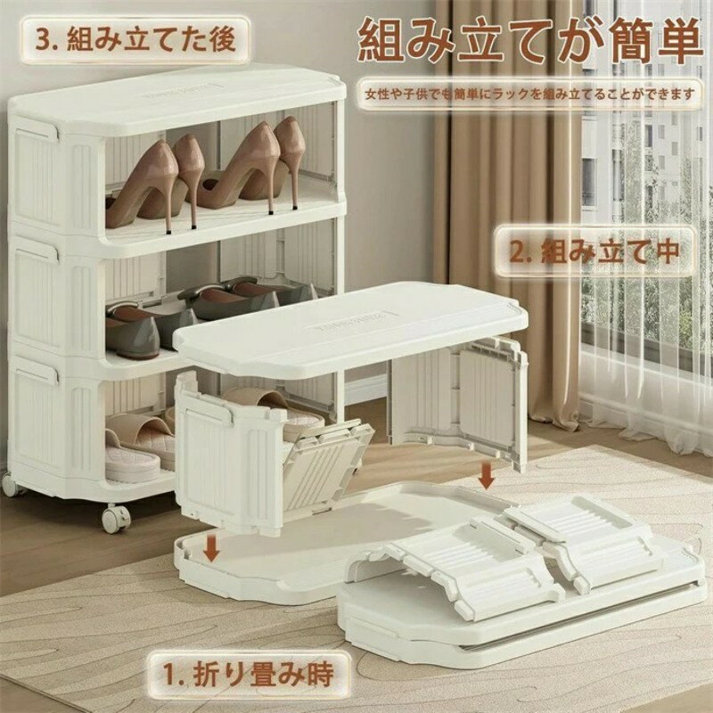 【ポイント10倍】新品発売!靴をきれいに収納 くつ収納ボックス 折りたたみコンテナ シューズラック スリム 5段 下駄箱 省スペース 靴収納 靴棚 靴置き 靴箱 靴ラック 靴入れ 厚み 強い耐荷重 組み立て簡単 積み重ね可能 玄関 空間に占めない 耐荷重 3段 5段 8段