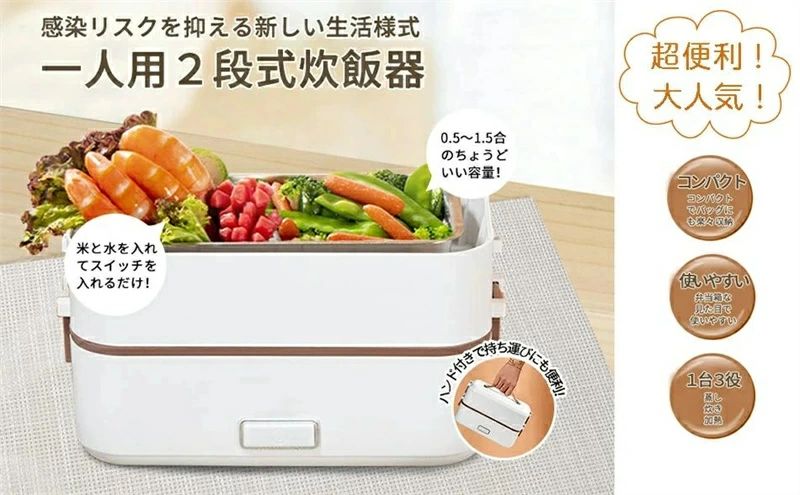 【新型&1台多役!】炊飯器 弁当箱 弁当箱炊飯器 弁当式炊飯器 一人暮らし 2段式炊飯器 マルチ炊飯器 おかずとお米同時料理 蒸し料理 炊き 温め 小型 ゆで卵 単層使用可能 携帯 ミニ炊飯器 304ステンレス鋼 オフィスランチ 車中泊 自宅などの場所で大活躍