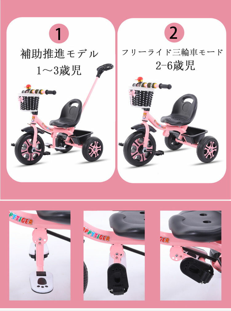 子供用三輪車 ベビーカー キッズバイク 三輪車 手押し棒付き 乗用玩具 ガードレール付き 子供用 幼児用 こども自転車 おもちゃ 1歳~6歳 軽量 収納かご ハイキング ギフト プレゼント おもちゃ ベビーバイク こども 乗り物 誕生日プレゼント