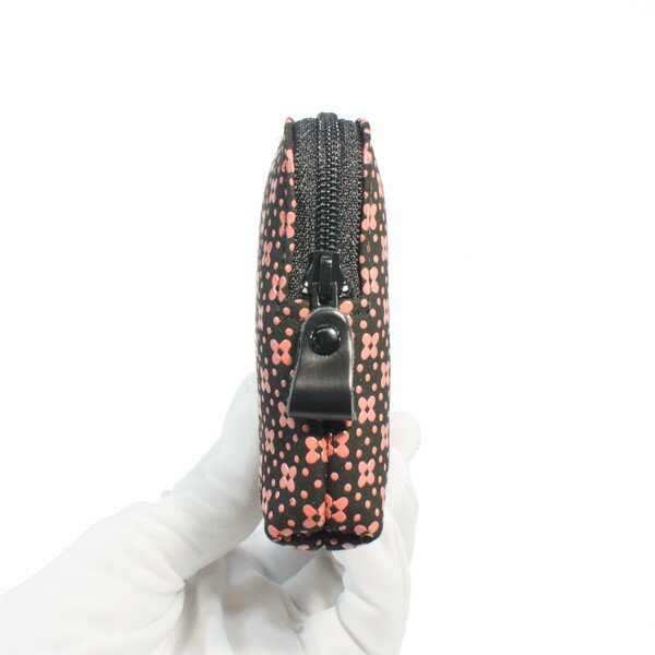 印伝 【甲州印伝 印傳屋 上原勇七】小物ポーチ 化粧ポーチ【4409 花格子 黒地×ピンク漆】 女性用 レディース 鹿革 本革 レザー 花柄 ブランド クリスマス 贈り物【YM01】