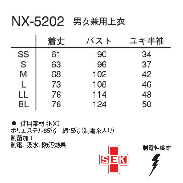 ●制菌加工●制菌加工制電、吸水、防汚効果●きびきびした動きを感じるスポーティーなデザインです。襟元、袖、ポケットのアクセントカラーが全体を引き締めて、きりっとしたイメージが伝わります。●しっかり感とやわらかさに特長のあるシャツ素材です。高い伸縮性を持ち、着心地の良さと動きやすさを提供します。特殊仕上により吸水、防汚効果を付加しています。業務用洗濯にも耐えうる形態安定素材です。●男女兼用●ポリエステル85%綿15%(制電糸入り)国内シェアNo.1 ナガイレーベンの白衣