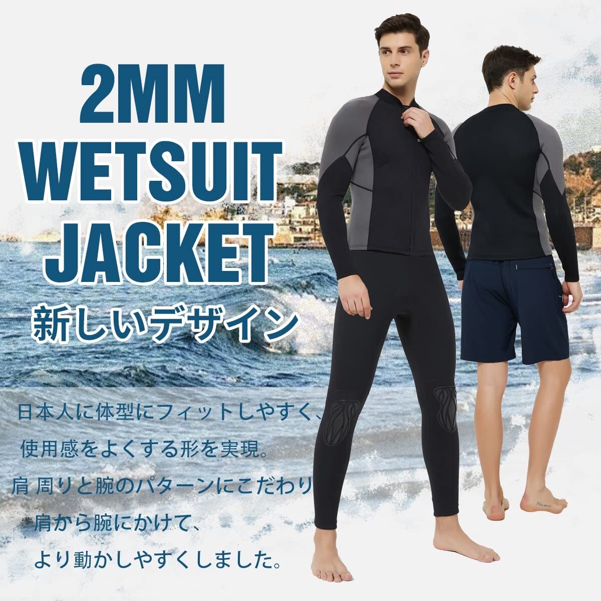 \2個300円OFF/ウェットスーツ 長袖ジャケット 2mm フロントジッパー 伸縮性 防寒防風 保温 耐久 水陸両用 オートバイ サーフィン フィッシング シュ ノーケリング 沢登 磯釣り