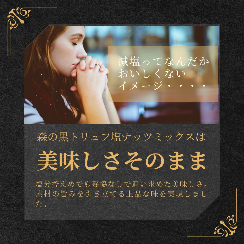 減塩 森の黒トリュフ塩 ミックスナッツ 70g 1袋 2袋 6袋 塩分控えめ トリュフ 香る ナッツ ナッツミックス おつまみ おやつ 間食 食物繊維 アーモンド カシューナッツ くるみ 黒トリュフ フレーバー 個包装 小分け 小袋 パック MDホールディングス 条件付き 送料無料