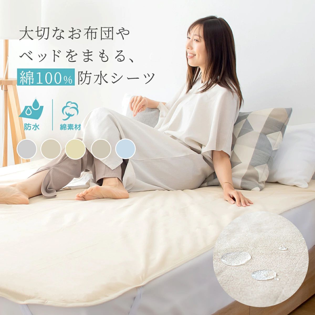 メーカー希望小売価格はメーカーサイトに基づいて掲載しています▲BLACK FRIDAY特設ページはこちら▲ [ 一緒に使うと快適!おすすめ寝具 ] ▼ 綿100%パイル敷きパッド ▼ ▼ レーヨン敷きパッド ▼ ▼ 6重ガーゼケット ▼ ▼ 綿100%ワッフルケット ▼ ▼ くしゅふわレーヨンケット ▼ ▼ 布団カバー3点セット ▼ [さっぱりパイル] 綿100% 防水シーツ 大切なおふとんをまもる、綿100%の防水シーツ。 お子様のおねしょ対策や保育園用はもちろん、 介護用や大切なペットにもおすすめです。 表地はお肌にやさしい安心の綿100%。 短めのパイルはさっぱりさらさらとした肌触りで オールシーズンお使いいただけます。 吸水性に優れている綿だから、すっと水分を吸い込みますが、 裏面が防水生地なので、下に染み込まず安心! ポリウレタンコーティングによる防水加工で しっかりと水分をはじき、おふとんやマットレスへの染み込みを防ぎます。 四隅ゴム付きでずれにくく、敷き布団はもちろんマットレスにもお使い頂けます。 長期間お使いいただけるよう、ゴムは通常よりへたりにくい強化ゴムを使用しています。 カラーバリエーションはナチュラルなアイボリー・ベージュ・ブラウン・グレー・ブルーの5色からお選びいただけます。 洗濯機での丸洗いが可能なのでお手入れも簡単です。 [ 材質 ] 表地:綿100% グランド:ポリエステル100% 裏地:ポリウレタンコーティング [ カラー ] アイボリー / ベージュ / ブラウン / グレー / ブルー (ブルーはベビー、ハーフ、シングルのみ) [ サイズ ] ベビー 約75×100cm ハーフ 約100×150cm シングル 約100×205cm ※圧縮梱包してメール便でのお届けです セミダブル 約120×205cm ダブル 約140×205cm クイーン 約160×205cm ワイドキング 約200×205cm [ 仕様 ] 表面綿100%パイル / 裏面防水加工 / 四隅強化ゴム付き [ 生産国 ] 中国 [ お手入れについて ] ●洗濯機での脱水は短時間で軽く水気がなくなる程度にしてください ●塩素系漂白剤のご使用はおやめください ●洗剤は無蛍光洗剤をご使用ください ●お洗濯の際は洗濯ネットをご使用ください ●乾燥機のご使用はおやめください [ 梱包について ] 簡易梱包でのお届けとなります 商品を袋にお入れし、宅配ビニール袋または段ボールに入れての発送です [ 追加送料について ] 3,980円以上ご購入いただいた場合につきましても、配送地域が離島となる場合は別途送料を頂いております。 別途必要となる送料はご注文確定後、当店よりお送りするメールにご了承をいただいてからの加算・商品発送となります。 追加送料について詳しくは こちら ※お使いのモニターや部屋の照明により実際の商品とは色味が異なる場合があります。ご了承ください。 ▼▼▼ 公式LINE 新規友だち500円クーポン配布中 ▼▼▼