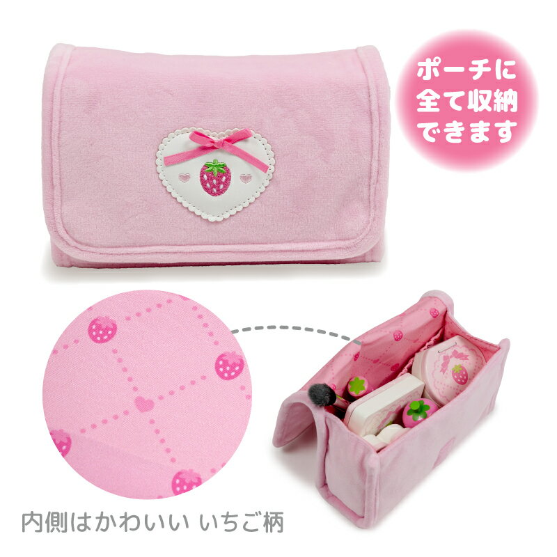 メイクセット キッズ おままごと 木製 メイク ポーチセット 《いちご桃/いちごドット/ユニコーン/スウィートストロベリー》マザーガーデン おもちゃ 木 化粧 色がつかない お化粧セット 子供 4歳 3歳 女の子 誕生日 プレゼント おしゃれ お化粧ごっこ