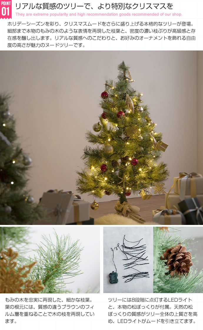 クリスマスツリー ツリー ヌードツリー おしゃれ 木 高さ150cm 本格的 松ぼっくり付き LEDライト 高級感 リアル 北欧 お洒落 モダン デザイン シンプル 新生活 一人暮らし ファミリー 子供 キッズ 冬 サンタ トナカイ ウィンター 季節 ホリデー シーズン プレゼント 飾る