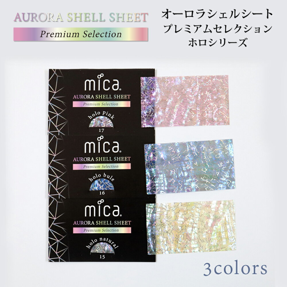 mica オーロラシェルシート プレミアムセレクション[ホロシリーズ]【3色セット】 ケース3個付き ホログラムがプラスされた極上の輝き 国産天然あわび貝シェルシート 高級品質のシェルシート シェルフレーク ジェルネイル マニキュア 【 3枚セット】