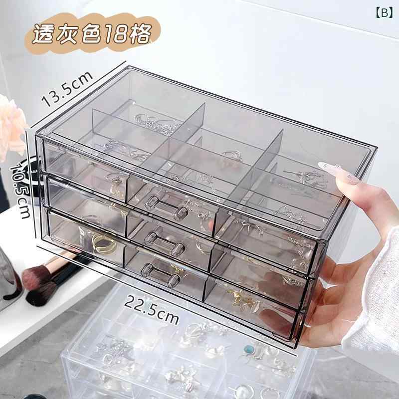 アクセサリーケース アクリル製 イヤリング ピアス 指輪 ネックレス 小物入れ 透明 多層 18区切り