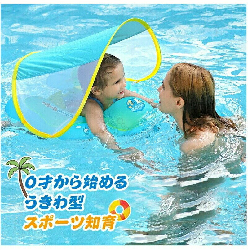 浮き輪 赤ちゃん 子供用 日除け付き フロート 足入れ 屋根付き 日よけ効果 スイミング 水遊び かわいいデザイン お風呂 水泳練習 知育玩具 おふろ用 新生児 ベビー向け安心仕様