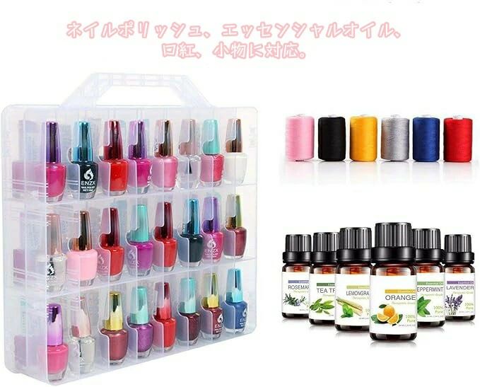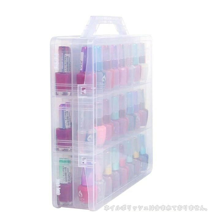 ネイルポリッシュボックス 両面開き ネイルポリッシュオーガナイザー 48本収納可能ホルダー 携帯便利 クリア両面オーガナイザー スレッ