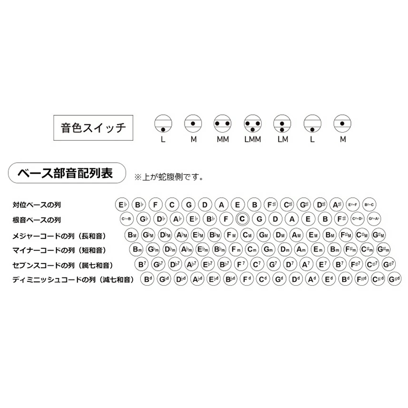 【特徴】 人気のトンボ・グランデールに37鍵96ベースのミドルスペックがラインナップに加わりました。 ベース部にはメジャー、マイナー、セブンスの他、ディミニッシュコードまで搭載。 より演奏の幅が広がり、あらゆるジャンルに対応できます。 「中型にステップアップして、イタリア製はその次に検討したい…」 そんな方にもぴったりのアコーディオンです。 カラーはコスモグレーパールとパッションレッドパールの2色。 両色とも蛇腹の内部色は赤となっており、演奏時にアクセントになります。 演奏後のお手入れの必需品、クリーニングクロスプレゼント! 【スペック】 ◆ 37鍵(MML3列笛) ◆ 96ベース(5列笛) ◆ 重量 : 9.3 kg ◆ スイッチ:7/ベース2 ◆ カラー:コスモグレーパール / パッションレッドパール ◆ ソフトケース付き 【ご注意事項】 こちらの商品はメーカーにて調整、検品したものを取り寄せとなります。 ご注文いただき次第、納期を確認し、ご連絡を差し上げます。 日時指定希望がおありの場合はその際におうかがいさせていただきます。 だいたい、ご注文(支払決済確認) から1週間以内のお届け予定ですが、祝祭日やメーカー夏期、冬期休業期間等で それ以上のお時間を頂戴する場合もございますので、 あらかじめご了承くださいますようお願いいたします。関連商品TOMBO GT-96 トンボ アコーディオン Grandaile コ...HOHNER Bravo III 72 BLK ホーナー アコーディオ...198,000円255,200円HOHNER Bravo III 72 RED ホーナー アコーディオ...HOHNER Bravo III 80 BLK ホーナー アコーディ...255,200円286,000円HOHNER Bravo III 80 RED ホーナー アコーディ...HOHNER XS ハンディ アコーディオン ダークブルー & オレン...286,000円120,000円HOHNER XS ハンディ アコーディオン ダークグレー & ホワイ...TOMBO GT-60B トンボ アコーディオン Grandaile ...120,000円110,000円TOMBO GT-60B トンボ アコーディオン Grandaile ...TOMBO TB-32S トンボ ソプラノ 合奏用 アコーディオン 3...110,000円113,300円人気のトンボ・グランデールに37鍵96ベースのミドルスペックがラインナップに加わりました。 ベース部にはメジャー、マイナー、セブンスの他、ディミニッシュコードまで搭載。 より演奏の幅が広がり、あらゆるジャンルに対応できます。 「中型にステップアップして、イタリア製はその次に検討したい…」 そんな方にもぴったりのアコーディオンです。 カラーはコスモグレーパールとパッションレッドパールの2色。 両色とも蛇腹の内部色は赤となっており、演奏時にアクセントになります。 演奏後のお手入れの必需品、クリーニングクロスプレゼント!