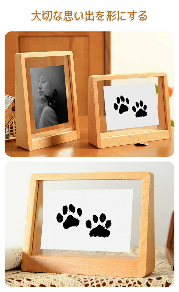 【送料無料】フォトフレーム 木製 足形 ペット 足形キット フォトスタンド ねこ 猫 犬 愛犬 愛猫 手形足形 足型 肉球 型取り 汚れない 木製 シンプル インク キット 手形足形キット 記念 思い出 メモリアル ペットグッズ ギフト プレゼント