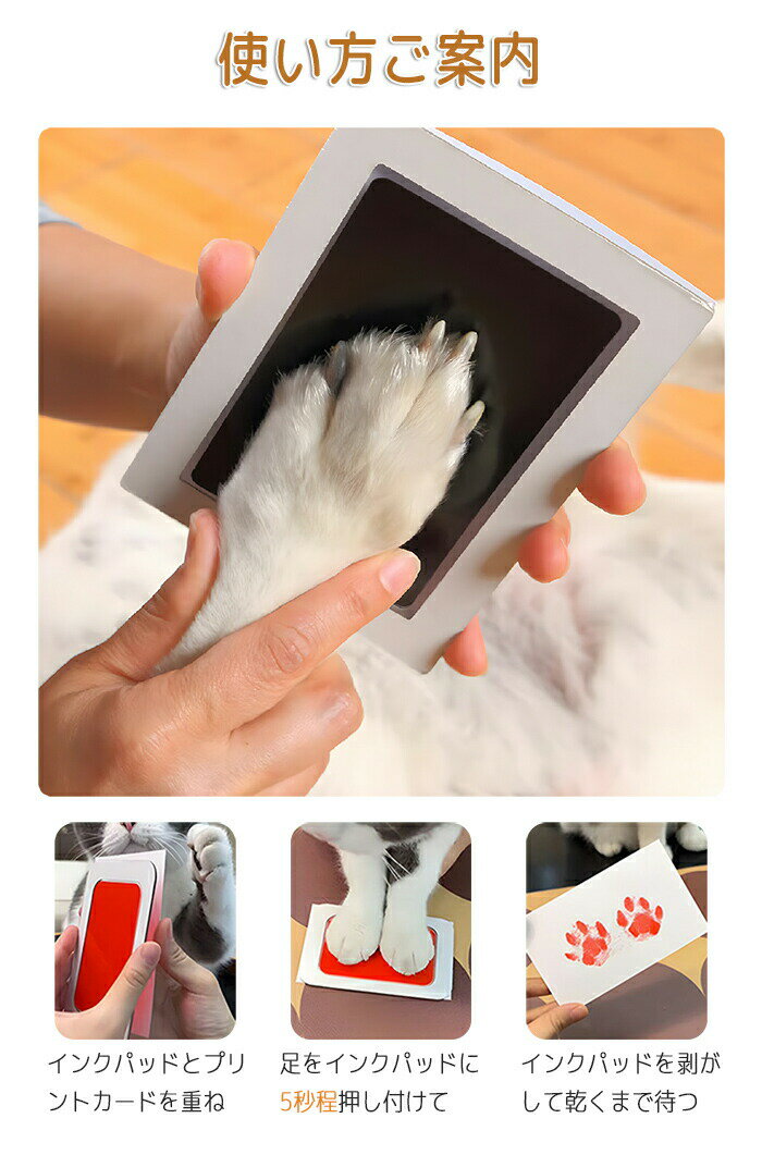 メーカー希望小売価格はメーカーサイトに基づいて掲載しています商品情報サイズ:画像をご参照くださいメイン素材:木製インクパッドのカラー:ブラック・ピンク・レッドセット内容:フォトスタンド、インクパッド×2生産国:中国フォトフレームにペットの足形を飾ることで、大切なペットがいつも身近に感じられます軽く押すだけで足形の型取りは完成〜 汚れないタイプなので洗ったりの面倒な作業もいりません天然木製素材で作られ、天然木の特有の質感や風合いの良さは魅力的で環境にもやさしい可愛い肉球を色褪せることなく細部まで美しく残して大切な思い出を形にする購入前のご注意※商品写真はできる限り実物と近づけるようにしておりますが、お使いのモニター設定、お部屋の照明等により実際の商品と色味が異なる場合がございます。※採寸はあくまで目安としてのもので、表記に多少の誤差(前後2〜3cm)が生じる場合があります。商品情報サイズ:画像をご参照くださいメイン素材:木製インクパッドのカラー:ブラック・ピンク・レッドセット内容:フォトスタンド、インクパッド×2生産国:中国フォトフレームにペットの足形を飾ることで、大切なペットがいつも身近に感じられます軽く押すだけで足形の型取りは完成〜 汚れないタイプなので洗ったりの面倒な作業もいりません天然木製素材で作られ、天然木の特有の質感や風合いの良さは魅力的で環境にもやさしい可愛い肉球を色褪せることなく細部まで美しく残して大切な思い出を形にする購入前のご注意※商品写真はできる限り実物と近づけるようにしておりますが、お使いのモニター設定、お部屋の照明等により実際の商品と色味が異なる場合がございます。※採寸はあくまで目安としてのもので、表記に多少の誤差(前後2〜3cm)が生じる場合があります。