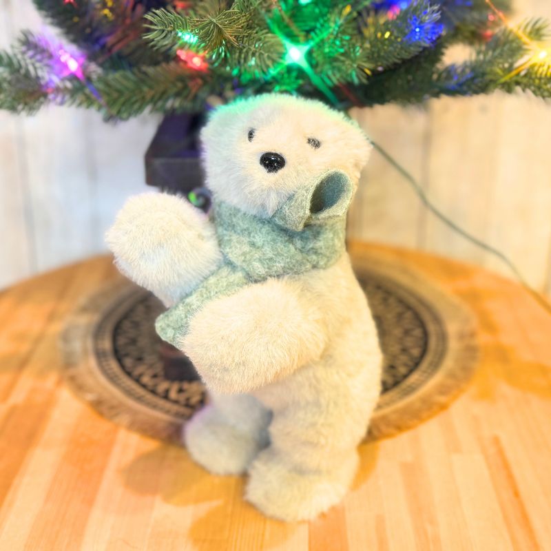 スタンディングベアースタンド ふわふわ素材で作られたシロクマの置物は、優しい手触りと愛らしい姿が魅力。グリーンのマフラーがアクセントになり、冬のインテリアに温もりをプラスします❄️。玄関やリビング、棚や窓辺など、どこに置いても癒しの空間を演出。ナチュラルテイストや北欧風のお部屋にもぴったり。クリスマスデコレーションのアイテムとしてもおすすめで、ギフトにも喜ばれるインテリアグッズです🎄。 シロクマ 置物 クリスマス雑貨 北欧 ナチュラル おしゃれ かわいい 冬飾り インテリアグッズ プレゼント デコレーション ーーーサイズーーー 縦幅:約30cm 横幅:約14cm 厚み:約20cm 重さ:約123g ※撮影で使用しております小物等は付属しません。 ※注意事項:お使いのモニターの発色具合によって、実際の物と色が異なる場合がございます。