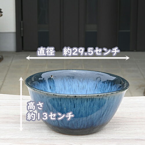 信楽焼き(水蓮鉢・はす鉢・メダカ鉢他)睡蓮鉢ブルー斑点めだか水鉢