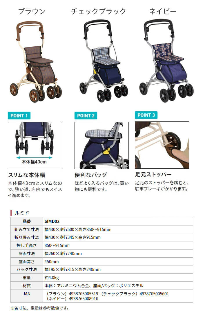 ★ルミド SIMD02 幸和製作所 シルバーカー 祖母 高齢者 敬老の日 ミドル 【代引き不可】