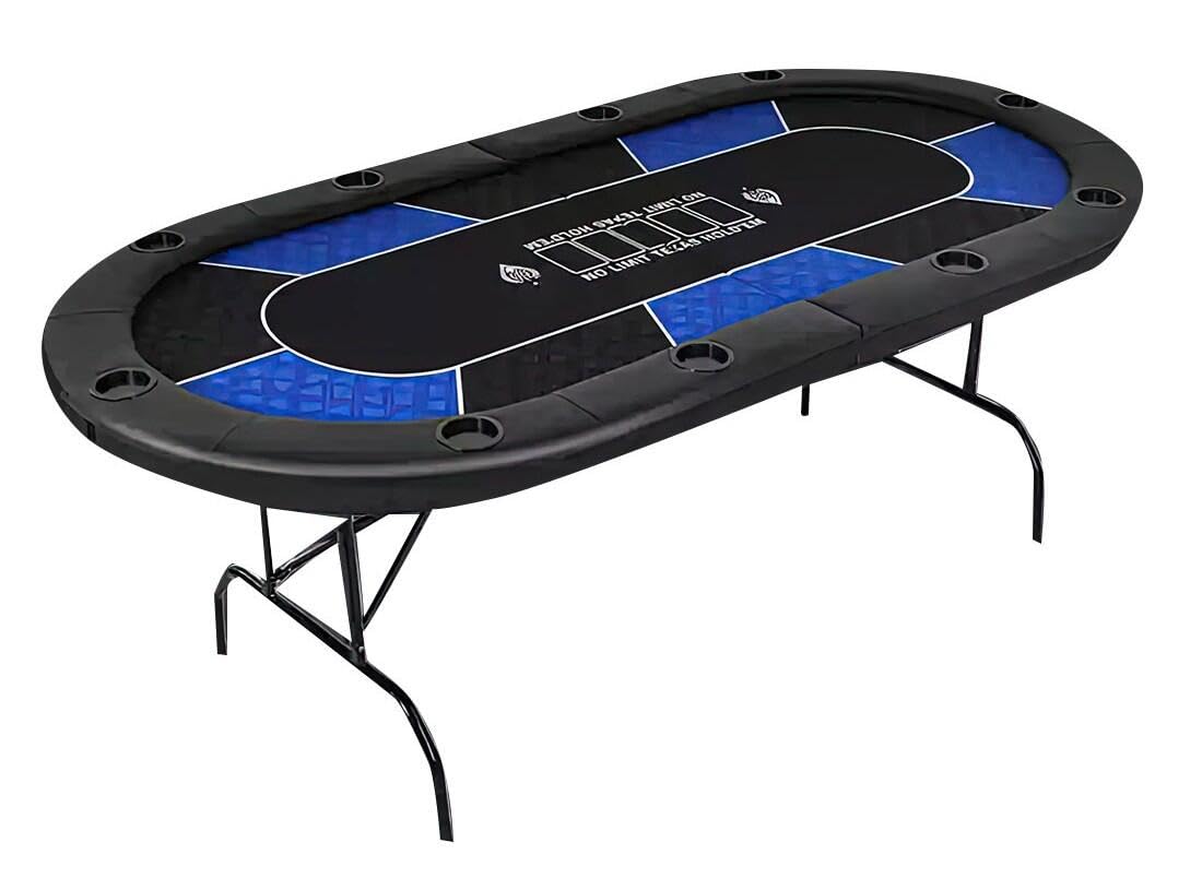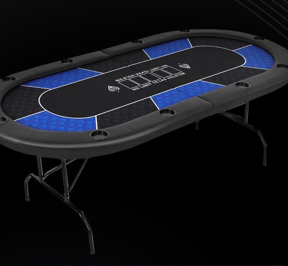 ポーカーテーブル 折りたたみ 10人用 カジノ テキサスホールデム ポーカーテーブル 楕円形 広い空間 カップホルダー付き 脚付き 持ち運び可能 組み立て不要 213×106cm