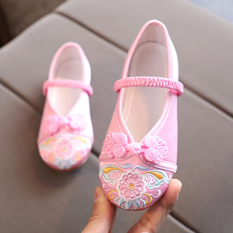 歳 痛くない楽ちん靴 七五三の靴 草履のかわりに履ける靴 蓮の花の刺繍 チャイナ靴 歩きやすい 草履 和柄の靴 女の子 子供靴 七五三 7歳 3歳