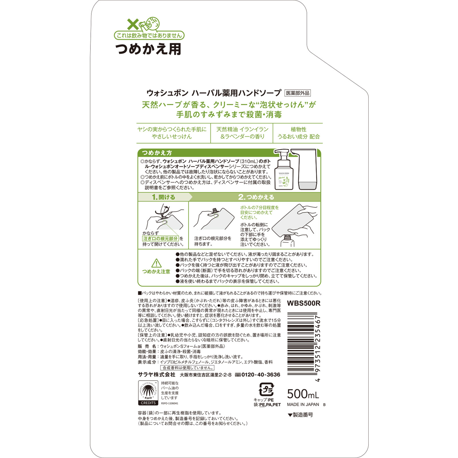 【医薬部外品】ウウォシュボン ハーバル薬用ハンドソープ つめかえ用 500ml