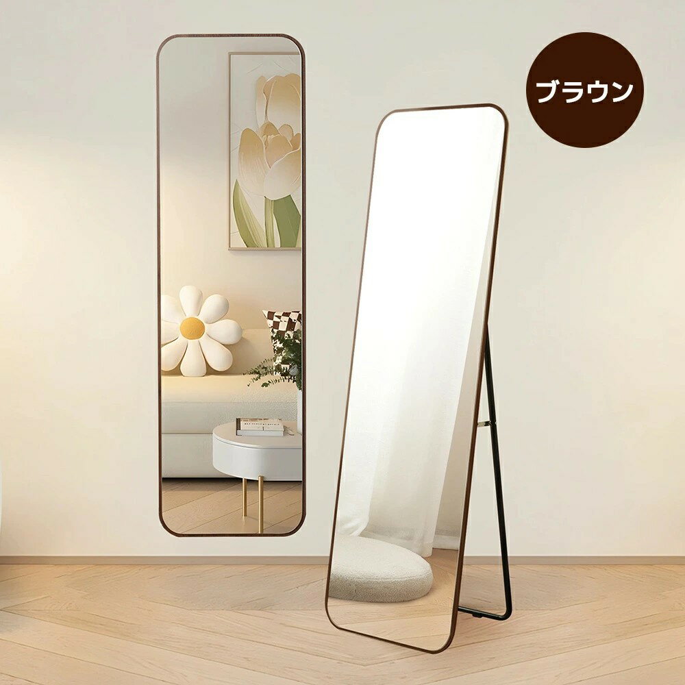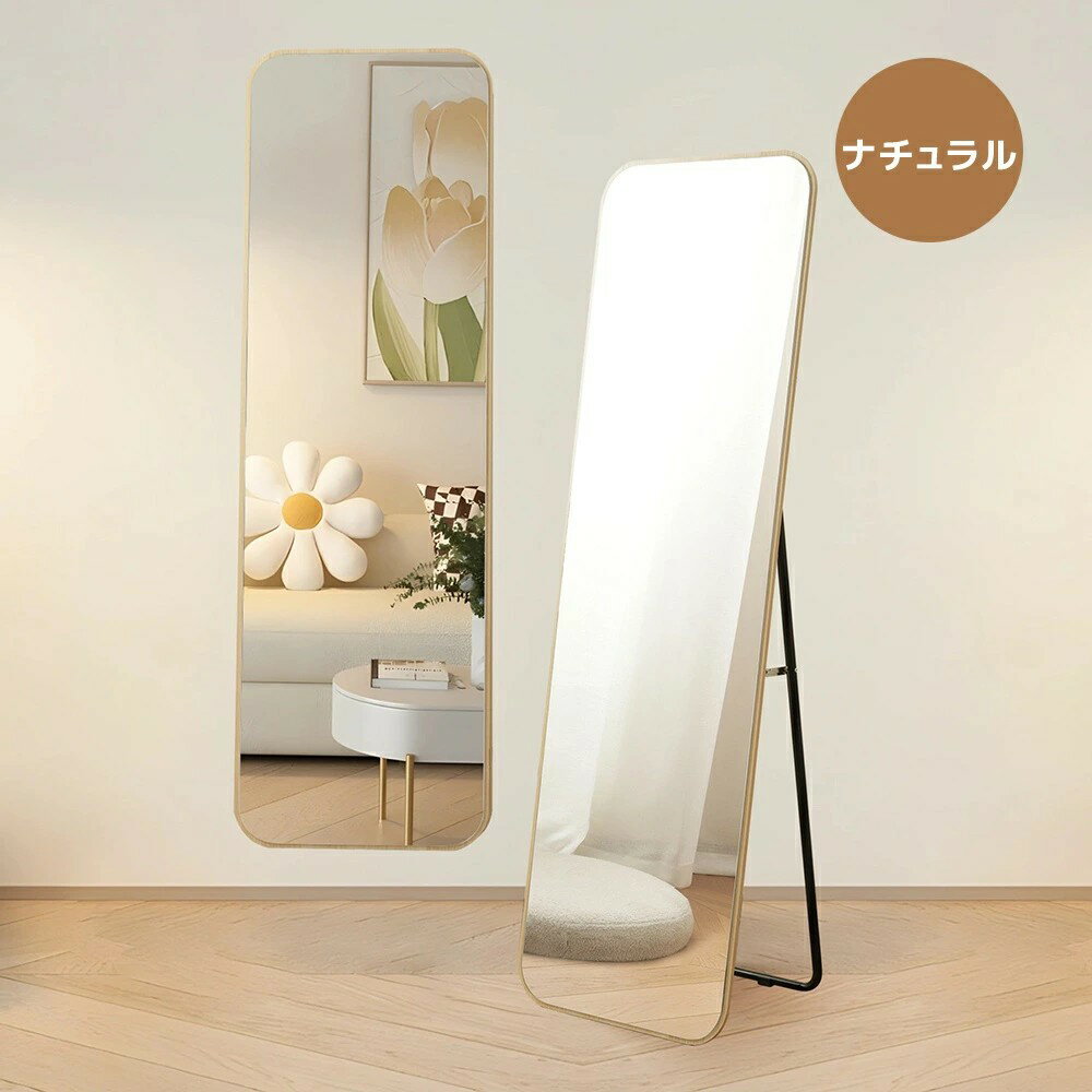 【3WAY】ミラー 鏡スタンドミラー 全身鏡 丸角フレーム 姿見鏡 北欧 木目調 スタンドミラー 壁掛けミラー 立てかけ 姿見 鏡 ミラー おしゃれ 飛散防止 160*50CM スリムミラー インテリア 韓国 インスタ映え 飛散防止加工 一人暮らし