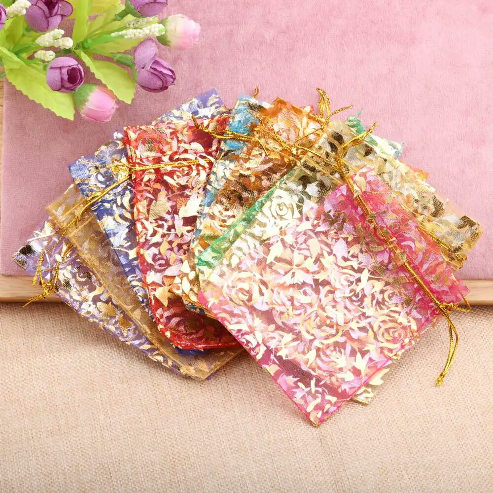 10cm x 15cm ローズフラワー オーガンジーアクセサリーギフト用巾着 1個販売 花 薔薇 バラ ギフト ラッピング用品 ポーチ プレゼント 業務用 店舗用 保管袋 ピアス 指輪 ジュエリー 手作り バッグ ギフトケース 布袋 雑貨 メッシュ 網 ネット 包装 無地 小さい 結婚式
