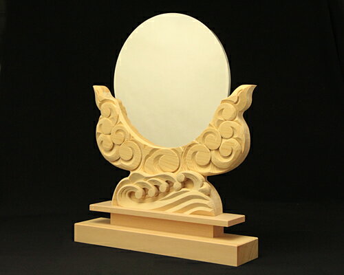 地金・鍍金の原材料の高騰が続いている為、価格が予告なく上がります。価格についてはご注文後に受注確認メール(ご注文直後にお送りする自動送信メールではなく、その後にお送りする送料等を記載したメール。)の価格をご確認くださいませ。見積り等、長期にわたる場合、ホームページ表示価格は参考価格とさせて頂き、ご発注時点での単価でお願いいたします。神鏡は、神様のめどう(目標)として使います。見えない自分の心を神鏡に映してふりかえり今日一日、 公明正大に誓いをたててすごします。真鍮板にニッケル鍍金を施した鏡と木曽桧で製作した雲形台です。神社さま等で使われている大きな神鏡と同じ仕様になります。※1尺1寸以上についてはお問い合わせください。弊社では、御神鏡と雲形台を購入いただく際に、一つ一つ御神鏡と雲形台の溝を合わせて、発送をさせて頂いております。すでに御神鏡もしくは雲形台をお持ちで、いずれか片方のご購入をご検討されているお客様へ※2通りのご購入方法をご案内いたします。(1)お手元の御神鏡もしくは雲形台を弊社へお送りいただきまして、実際に御神鏡もしくは雲形台の溝を合わせてお品をご購入いただく方法こちらの方法ですと、御神鏡と雲形台の溝がピッタリと合います。※加工費が別途必要となります。 加工費につきましては、お問い合わせくださいませ。※この場合の弊社にお送りいただきます際と弊社より返送させていただきます際の往復の送料は、実費ご負担をお願い申し上げます。(2)お手持ちの御神鏡の厚みを測っていただきまして、お伺いした御神鏡厚みに合わせて溝を打ち、雲形台を発送させていただく方法もしくは御神鏡が届き次第、調整していただけるように調整用ペーパー板(神鏡台の溝)を購入し、お客様ご自身が調整をしていただく方法こちらの方法ですと、御神鏡と雲形台の溝がピッタリ合わない場合がございます。※調整用ペーパー板 (神鏡台の溝用)は、こちらからご覧ください。※寸法・彫師によりデザインが写真と異なる場合があります。ご了承下さいませ。■サイズ(約・mm)径24.0cm 8寸■重量(約・g)—■材質御鏡:真鍮板にニッケルメッキ雲形台:木曽桧製■お手入れの方法月に一度は素手で中性洗剤を使って鏡を洗ってください。汚れが落ちてきたら流水で洗剤をきれいに洗い流します。水滴のふき取りは日本てぬぐいか、ガーゼで吸い取ってください。※ごしごしと拭くと鏡にキズが付いてしまいます。月に一度洗うだけで神鏡はかなり長く使っていただけます。逆に洗わないと2年くらい経つと鏡が曇ってしまいます。■替え時・処分の方法御鏡が曇ってしまったり、神棚や神具を新調する際にご一緒に交換してください。【御鏡】 お塩で清め処分してください。【雲形台】 お近くの神社様などでお焚き上げして頂くか、お塩で清め処分してください。こちらの商品は、店頭でも販売いたしております。在庫状況はすぐ反映するよう努めておりますが、売切れの場合はご容赦ください。商品写真の色合いは、お客様がお使いの情報端末デバイスの環境により若干異なって見える場合がございます。神鏡 神鏡台 鏡台 雲形 彫刻 神棚 神具 神祭具 送料無料