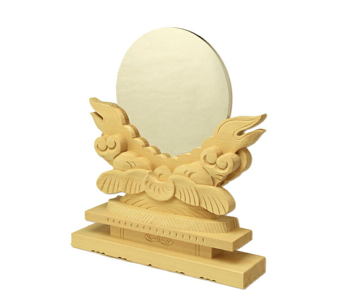 こちらの商品は受注生産の商品です。後ほど弊社から納期(完成・発送可能時期)を記載しました受注確認メールを送らせて頂きます。こちらの商品は受注生産の商品です。後ほど弊社から納期(完成・発送可能時期)を記載しました受注確認メールを送らせて頂きます。地金・鍍金の原材料の高騰が続いている為、価格が予告なく上がります。価格についてはご注文後に受注確認メール(ご注文直後にお送りする自動送信メールではなく、その後にお送りする送料等を記載したメール。)の価格をご確認くださいませ。見積り等、長期にわたる場合、ホームページ表示価格は参考価格とさせて頂き、ご発注時点での単価でお願いいたします。神鏡は、神様のめどう(目標)として使います。見えない自分の心を神鏡に映してふりかえり今日一日、 公明正大に誓いをたててすごします。真鍮板にニッケル鍍金を施した鏡と木曽桧で製作した雲形台です。神社さま等で使われている大きな神鏡と同じ仕様になります。※1尺1寸以上についてはお問い合わせください。弊社では、御神鏡と雲形台を購入いただく際に一つ一つ御神鏡と雲形台の溝を合わせて発送をさせて頂いております。すでに御神鏡もしくは雲形台をお持ちで、いずれか片方のご購入をご検討されているお客様へ※2通りのご購入方法をご案内いたします。(1)お手元の御神鏡もしくは雲形台を弊社へお送りいただきまして、実際に御神鏡もしくは雲形台の溝を合わせてお品をご購入いただく方法こちらの方法ですと、御神鏡と雲形台の溝がピッタリと合います。※加工費が別途必要となります。 加工費につきましては、お問い合わせくださいませ。※この場合の弊社にお送りいただきます際と弊社より返送させていただきます際の往復の送料は、実費ご負担をお願い申し上げます。(2)お手持ちの御神鏡の厚みを測っていただきまして、お伺いした御神鏡厚みに合わせて溝を打ち、雲形台を発送させていただく方法もしくは御神鏡が届き次第、調整していただけるように調整用ペーパー板(神鏡台の溝)を購入し、お客様ご自身が調整をしていただく方法こちらの方法ですと、御神鏡と雲形台の溝がピッタリ合わない場合がございます。※調整用ペーパー板 (神鏡台の溝用)は、こちらからご覧ください。※寸法・彫師によりデザインが写真と異なる場合があります。ご了承下さいませ。■サイズ(約・mm)径21.0cm 7寸Bタイプ(こちらの写真は3寸5です。)■重量(約・g)—■材質御鏡:真鍮板にニッケルメッキ雲形台:木曽桧製■お手入れの方法月に一度は素手で中性洗剤を使って鏡を洗ってください。汚れが落ちてきたら流水で洗剤をきれいに洗い流します。水滴のふき取りは日本てぬぐいか、ガーゼで吸い取ってください。※ごしごしと拭くと鏡にキズが付いてしまいます。月に一度洗うだけで神鏡はかなり長く使っていただけます。逆に洗わないと2年くらい経つと鏡が曇ってしまいます。■替え時・処分の方法御鏡が曇ってしまったり、神棚や神具を新調する際にご一緒に交換してください。【御鏡】 お塩で清め処分してください。【雲形台】 お近くの神社様などでお焚き上げして頂くか、お塩で清め処分してください。こちらの商品は、店頭でも販売いたしております。在庫状況はすぐ反映するよう努めておりますが、売切れの場合はご容赦ください。商品写真の色合いは、お客様がお使いの情報端末デバイスの環境により若干異なって見える場合がございます。神鏡 神鏡台 鏡台 雲形 彫刻 特上 神棚 神具 神祭具