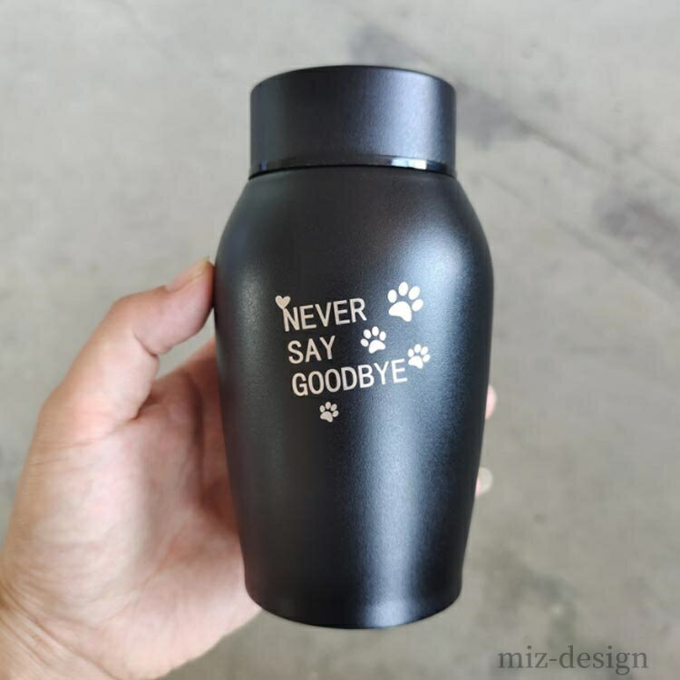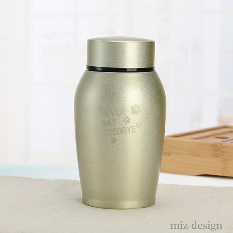 手元供養ためのペット用骨壺。丈夫で劣化の少ないステンレス製骨壺、愛するペットや動物の骨や毛、爪など一部を納めて、手元で供養できるから、お空に旅立ってしまった大切なペットをいつも身近で触れられ、ずっと一緒だと感じられます。密閉性の良い蓋デザイン、防湿性に優れているため、安心して保管できます。カプセルの表面にはnever say goodbyeと肉球絵柄付きで、質感もよく、高級感溢れるミニ骨壺です。 サイズFサイズについての説明F 直径約6cm 縦約13.5cm サイズ表の実寸法は商品によって多少の誤差がある場合がございます。素材ステンレス色ブラウン レッド マットグレー マットブルー マットゴールド マットブラック備考 ●サイズ詳細等の測り方はスタッフ間で統一、徹底はしておりますが、実寸は商品によって若干の誤差(1cm〜3cm )がある場合がございますので、予めご了承ください。●製造ロットにより、細部形状の違いや、同色でも色味に多少の誤差が生じます。●パッケージは改良のため予告なく仕様を変更する場合があります。▼商品の色は、撮影時の光や、お客様のモニターの色具合などにより、実際の商品と異なる場合がございます。あらかじめ、ご了承ください。▼生地の特性上、やや匂いが強く感じられるものもございます。数日のご使用や陰干しなどで気になる匂いはほとんど感じられなくなります。▼同じ商品でも生産時期により形やサイズ、カラーに多少の誤差が生じる場合もございます。▼