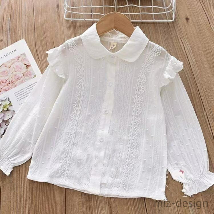 【送料無料】卒業式 結婚式 子供服 ブラウス 丸襟 フォーマルブラウス シャツ レース襟 キッズ 無地 女の子 入園式 綿 フリル 長袖 ジュニア