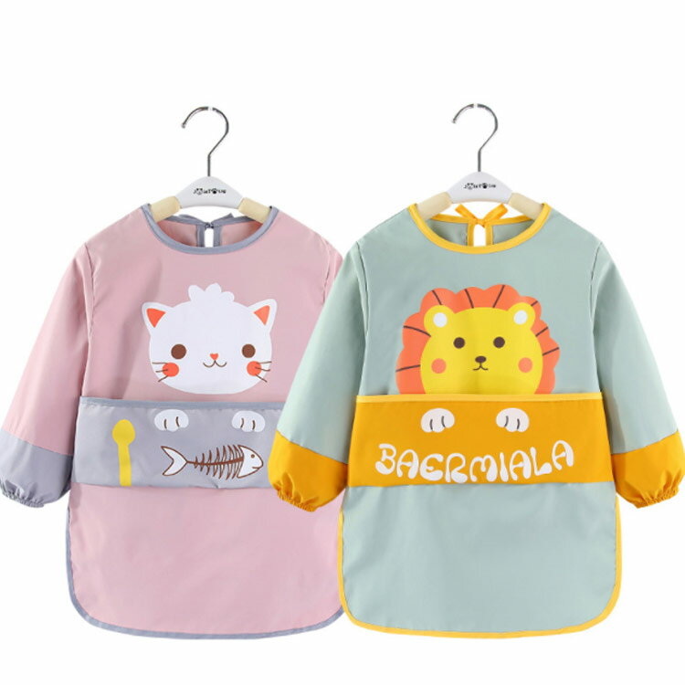 送料無料 スモック ベビー キッズ ロングスモック 防水 長袖 お食事エプロン スタイ よだれかけ 幼児 子ども ポケットつき 食べこぼし防止 保育園 幼稚園 外遊び 女の子 男の子 1歳 2歳 出産祝い 90 100 110 120
