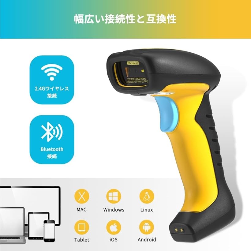 「工業用防水・耐衝撃・防塵」防塵・防滴・防水性能はIP67レベルに達しており、頑丈な設計と耐久性のあるシリコンプラスチック素材により、NETUM NT-1200は誤って落下しても損傷する可能性が低くなります。最大 12 フィート/3.65 メートル。このバーコード スキャナは、ひどい塵埃から保護する一体型ハウジングを備えており、ほとんどの過酷な作業条件に耐えることができます。「2.4Gワイヤレス/Bluetooth経由で接続」NETUM NT-1200バーコードスキャナは2.4GワイヤレスおよびBluetooth伝送で動作します。クレードルには 2.4G レシーバーが内蔵されており、スキャナーをプラグアンドプレイにします。Bluetooth 経由でスキャナーをデバイスに接続します。HID / SPP / BLE モードをサポートし、ラップトップ、PC、スマートフォン、タブレット、iPhone に簡単に接続できます。、iPad、POS。「自動スキャン&ストレージモード」NT-1200 QR 2D Bluetooth ワイヤレスバーコードスキャナーには、手動トリガーモード、連続スキャンモード、自動感知スキャンモードの 3 つのスキャンモードがあります。ハンドフリーおよび手持ち操作。さらに、ストレージモードもあります。ストレージ モードは、Bluetooth およびワイヤレス接続の範囲外にいるときに使用できます。最大 100,000 個のバーコードの保存をサポートします。注: 使用する前に、マニュアルの対応する設定バーコードをスキャンする必要があります。「優れたスキャン性能」NETUMバーコードスキャナは高解像度スキャンエンジンを採用しています。以下のコードを認識できます: UPC-A UPC-E EAN-8 EAN-13 (補完コード付き) Code128 Code39 Code 39Full ASCII Codabar Industrial/Interleaved 2 of 5 Code93 MSI Code11 ISBN ISSN China Post など (オプション) GS1 Databar Code32; 2D:QRコード、データマトリックス、PDF417、アステカコード、マキシコードなど「長い稼働時間」: 2600mah バッテリーにより、1 日 2000 個のバーコードをスキャンした場合、フル充電で 30 営業日が可能です。クレードルは充電容量を提供し、使用しないときはスキャナをクレードル上に置き、充電を続けます。※ 他ネットショップでも併売しているため、ご注文後に在庫切れとなる場合があります。予めご了承ください。※ 品薄または希少等の理由により、参考価格よりも高い価格で販売されている場合があります。ご注文の際には必ず販売価格をご確認ください。※ 沖縄県、離島または一部地域の場合、別途送料の負担をお願いする場合があります。予めご了承ください。※ お使いのモニタにより写真の色が実際の商品の色と異なる場合や、イメージに差異が生じることがあります。予めご了承ください。※ 商品の詳細(カラー・数量・サイズ 等)については、ページ内の商品説明をご確認のうえ、ご注文ください。※ モバイル版・スマホ版ページでは、お使いの端末によっては一部の情報が表示されないことがあります。すべての記載情報をご確認するには、PC版ページをご覧ください。技術基準適合証明番号:217-220583