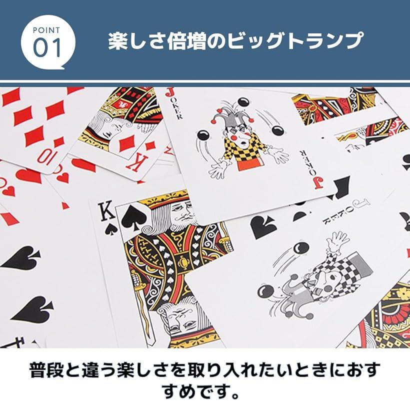 「楽しさ倍増のビッグトランプ」通常のトランプの約4倍サイズのビッグトランプ。ババ抜き・ジジ抜き、神経衰弱、七並べなど定番のトランプ遊びでも、ビッグトランプならさらに盛り上がること間違いなしです。普段と違う楽しさを取り入れたいときにおすすめです。「イベントやマジックにぴったり」大人数でのトランプゲームはもちろん、イベントやパーティ、マジックショーでの使用も盛り上がります。ほかにも、アクセサリーや小物と一緒にディスプレイすることでおしゃれな空間を演出できるので、インテリアとしての使用もおすすめです。「景品やプレゼントにも最適」めずらしいサイズのビッグトランプなら、景品やちょっとしたプレゼントにユニークで喜ばれます。厚みのある紙製でしっかりしており丈夫で、コーナー部分は丸く加工されているので安全にお使いいただけます。「商品詳細」サイズ:約17cmx約12cm 材質:紙製 色:レッド「MaT storeブランド」MaT storeブランドにて綺麗に梱包し、お客様の元へ商品をお届けいたします。※ 他ネットショップでも併売しているため、ご注文後に在庫切れとなる場合があります。予めご了承ください。※ 品薄または希少等の理由により、参考価格よりも高い価格で販売されている場合があります。ご注文の際には必ず販売価格をご確認ください。※ 沖縄県、離島または一部地域の場合、別途送料の負担をお願いする場合があります。予めご了承ください。※ お使いのモニタにより写真の色が実際の商品の色と異なる場合や、イメージに差異が生じることがあります。予めご了承ください。※ 商品の詳細(カラー・数量・サイズ 等)については、ページ内の商品説明をご確認のうえ、ご注文ください。※ モバイル版・スマホ版ページでは、お使いの端末によっては一部の情報が表示されないことがあります。すべての記載情報をご確認するには、PC版ページをご覧ください。