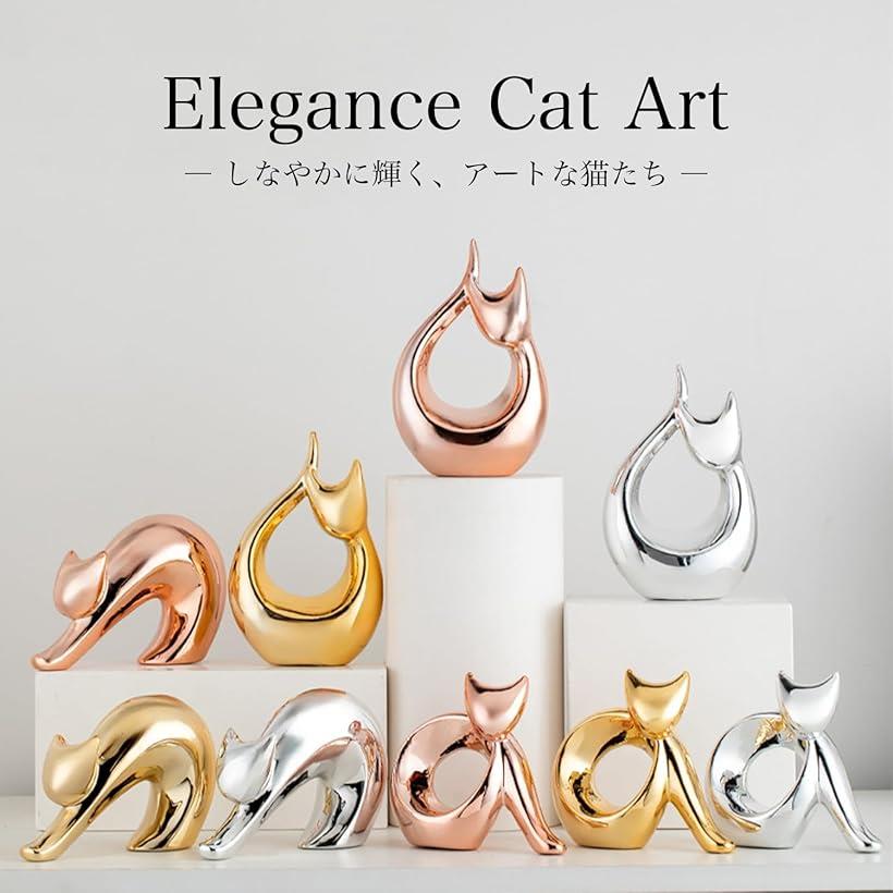 猫 アート オブジェ エレガント ネコ 置物 おしゃれ インテリア 雑貨 陶器小物かわいい 卓上 オーナメント コレクション フィギュア 北欧 寝室 リビング 玄関 ギフト ローズゴールド A シルバー B ゴールド C