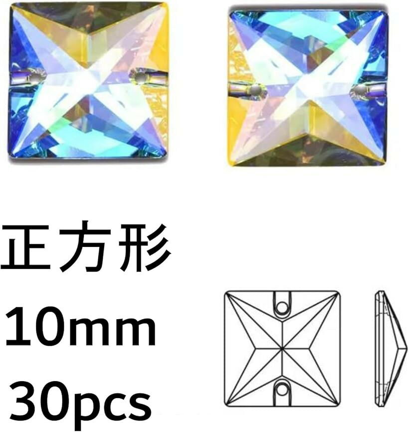 ハイエンド AB 加工 正方形 オーロラ クリスタル チャーム 2穴 手芸 材料 DIY パーツ A6ランク ガラスビシ゛ュー ガラスストーン 正方形オーロラ10mm30個