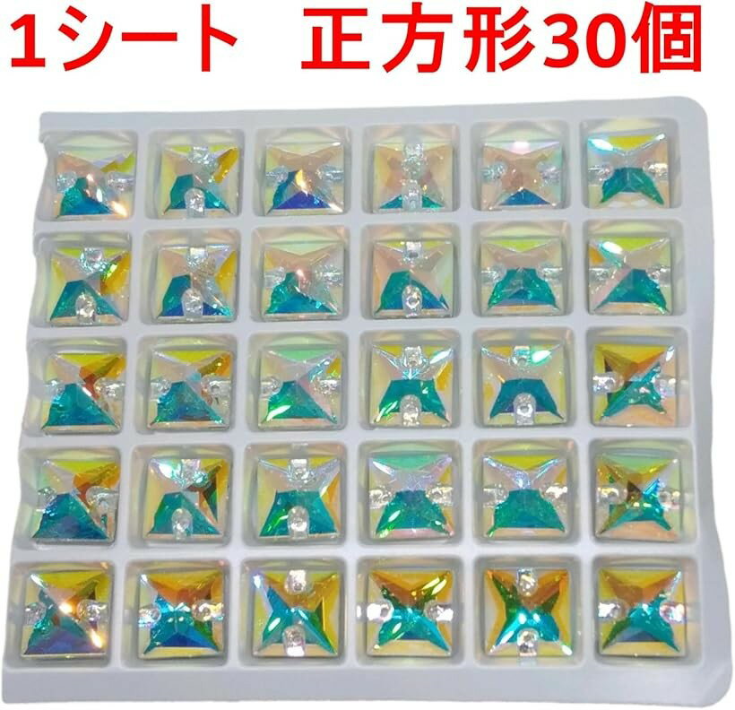 透明感あるクリスタルに、高品質ハイエンドな特殊なAB(オーロラ)加工を施しました。光の角度によって、ブルーやイエロー、ピンクなど色彩が瞬き、水面に太陽の光が反射したような、幻想的なきらめきを放ちます。シンプルながらも洗練され光を効率的に反射し輝きを演出します。上下2か所に穴が開いているため、丸カンやワイヤーを通すだけで、簡単にペンダントトップやピアス、イヤリングのチャームとしてご使用いただけます。ネックレス、ブレスレット、ピアス、イヤリングなどのアクセサリー制作はもちろん、サンキャッチャーやキーホルダー、バッグチャームなど、様々なハンドメイド作品にご活用いただけ、手作りのプレゼントにも最適。このクリスタルチャームで、特別なアクセサリーや雑貨を作ってみませんか?シンプルなデザインなので、他のビーズやパーツとの組み合わせも自由自在。初心者の方から上級者の方まで、ハンドメイド愛好家におすすめ「素材」高品質クリスタルガラス(AB加工) 「仕様」縫い付け用両端穴2つ 「形状」正方形 「販売単位」各サイズ別トレー1つで販売(トレー内の個数はサイズ別)「サイズ・シート個数」10mm 30個、12mm 24個、16mm 15個、22mm 8個 「ポイント」保管、制作に便利なプラスティックトレーでお届け※ 他ネットショップでも併売しているため、ご注文後に在庫切れとなる場合があります。予めご了承ください。※ 品薄または希少等の理由により、参考価格よりも高い価格で販売されている場合があります。ご注文の際には必ず販売価格をご確認ください。※ 沖縄県、離島または一部地域の場合、別途送料の負担をお願いする場合があります。予めご了承ください。※ お使いのモニタにより写真の色が実際の商品の色と異なる場合や、イメージに差異が生じることがあります。予めご了承ください。※ 商品の詳細(カラー・数量・サイズ 等)については、ページ内の商品説明をご確認のうえ、ご注文ください。※ モバイル版・スマホ版ページでは、お使いの端末によっては一部の情報が表示されないことがあります。すべての記載情報をご確認するには、PC版ページをご覧ください。