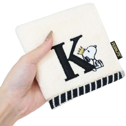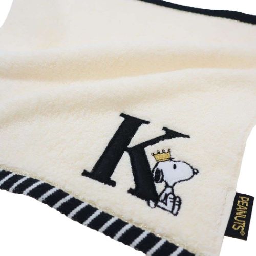 【ポイント10倍 & クーポン!】ミニタオル スヌーピー ふわふわイニシャルハンカチタオル K ピーナッツ 西川 プレゼント メール便可 マシュマロポップ