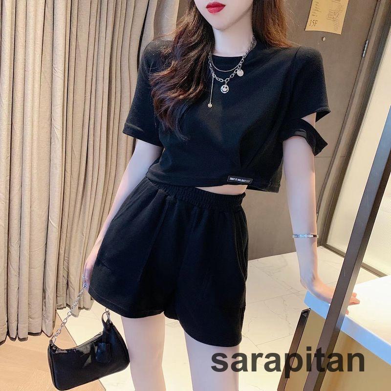 セットアップ レディース 女性用 上下セット 半袖 ショートパンツ 短パン スウェット 無地 大きいサイズ カットアウト ポケット付き おしゃれ カジ