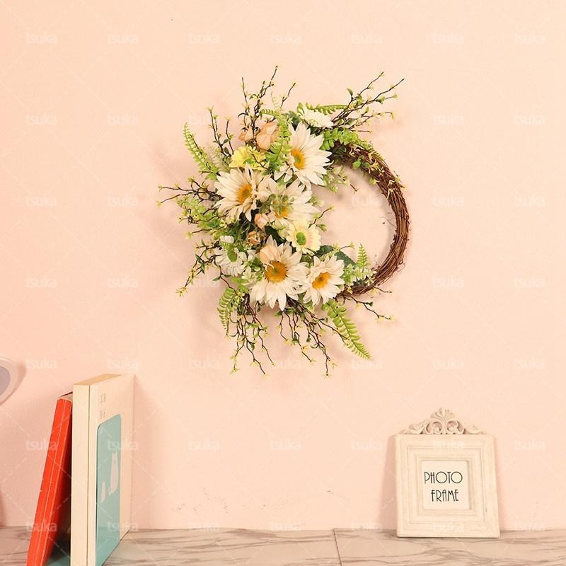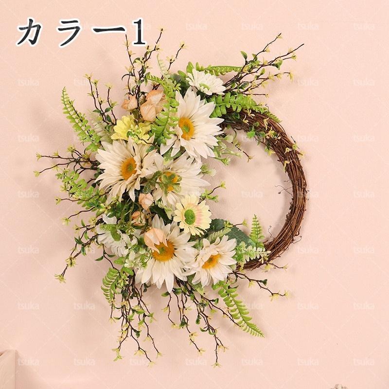 リース ドアリース 壁掛け 玄関飾り 造花 花輪 ウェルカムリース ひまわり プレゼント 母の日ギフト 北欧風 おしゃれ 玄関リース 結婚式 店舗 玄関 壁掛け