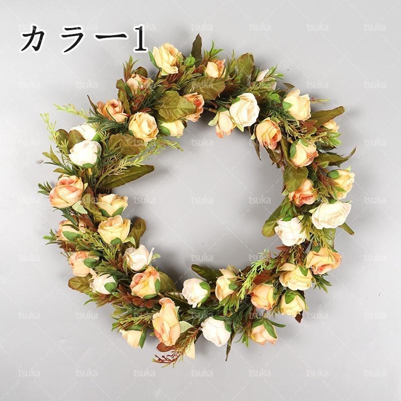 リース ドアリース 北欧風 壁掛け バラの花藤 玄関飾り おしゃれ 造花 花輪 壁掛フラワー 花輪 玄関リース 造花 ウェルカムリース フラワーギフト 店舗 庭園