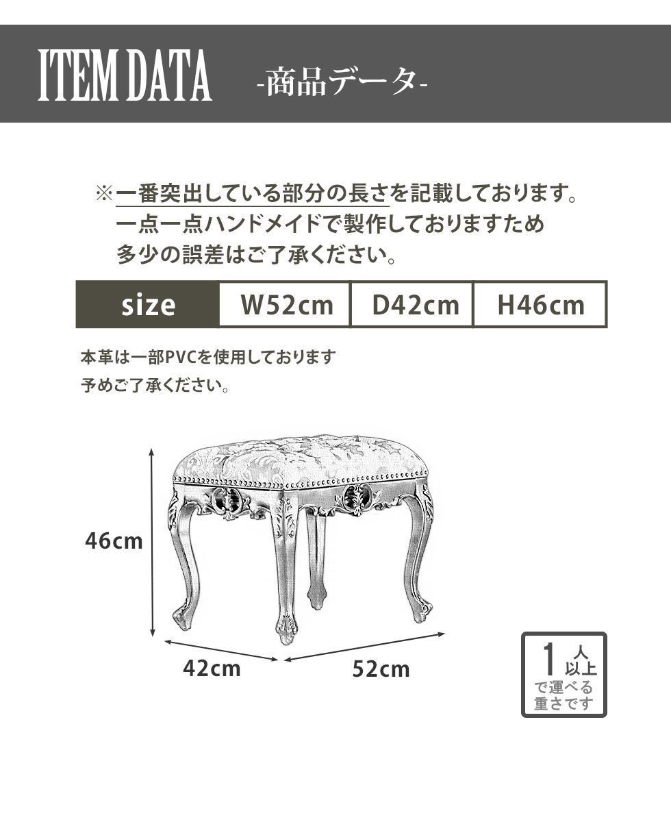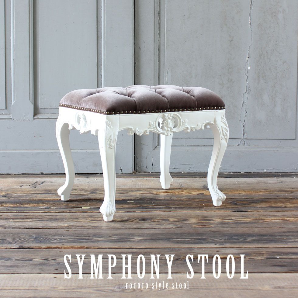 シンフォニー 1160-Sシリーズ スツール Sサイズ ホワイト×グレー ベルベット 1160-s-18f37b ■コメント■ ◇Symphony series◇ 憧れのヨーロピアンスタイルをさらに手軽にお求めやすく シンフォニーシリーズよりロースツールの登場です ロココ様式を復刻する為こだわったハンドメイド 軽快な透かし彫刻に宿る機械化できない職人の息づかい スツールの良し悪しを決める フレームと生地の繋ぎ目には単鋲を使用 1本1本丁寧に手作業で仕上げた本格派 アンティークのプロが本物にこだわったリプロダクト ご自宅、店舗様にも必ず気に入って頂ける ちょうどいいが詰まった最適なヨーロピアンスツールです