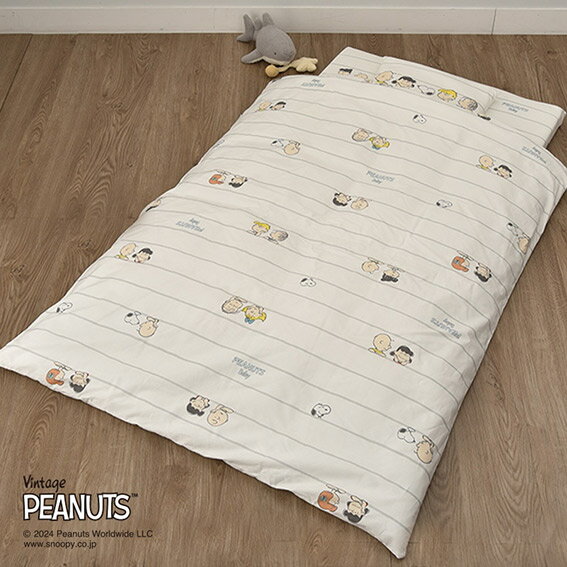 西川のこだわりがつまった日本製のベビーふとんセット】 ・カバー生地は綿100%でオーガニックコットンを使用しています。 ・うずまきキルト掛けふとんとカバーは、汚れてもすぐに洗えて、清潔に使えて便利です。 ・カビにくいから清潔な「ディフェンスタイプ固わた敷きふとん。 スヌーピーは、チャールズM. シュルツ氏が描いたコミック「ピーナッツ」に登場します。 スヌーピーと仲間たちを描いたデザイン。 ナチュラルな優しいカラーで、頬杖している子供たちがかわいらしく描かれています。 【セット内容】 ・掛けふとん :ふとんがわ 綿100% 詰めもの ポリエステル100% 95×120cm ・敷きふとん :ふとんがわ 綿100% 詰めもの ポリエステル100% 70×120cm ・枕 :生地 綿100% 詰めもの ポリエステル100% 37×27cm ・掛けふとんカバー :固わた敷きふとん用シーツ 102×128cm ・固わた敷きふとん用シーツ :綿100% 70×120cm ・枕カバー :綿100% 37×27cm 【生産国 日本製】