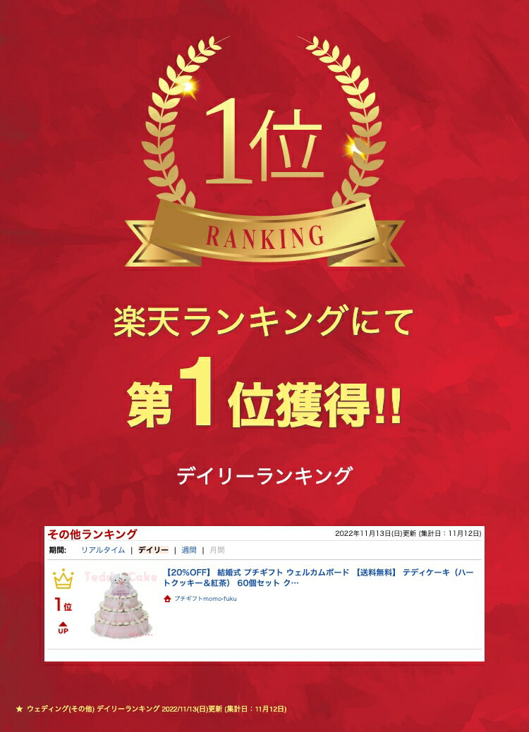 \楽天1位/【30%OFF】 結婚式 プチギフト ウェルカムボード 【送料無料】 テディケーキ(ハートクッキー&紅茶) 60個セット クッキー プチギフト お菓子 プチギフト 激安 クッキー 人気 敬老会 プレゼント イベント 国産 スイーツ