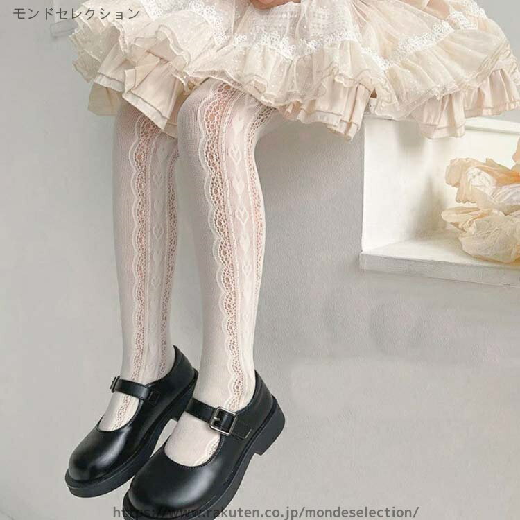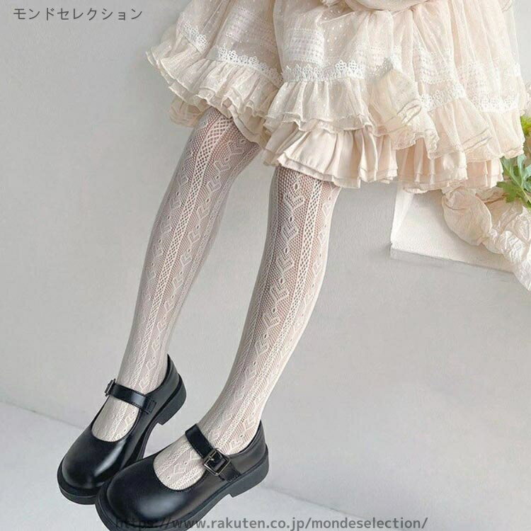 【送料無料】高学年 小学生 フォーマル 子供 コンクール 白 くつ下 レースタイツ こどもストッキング 発表会 大きいサイズ 網タイツ 靴下
