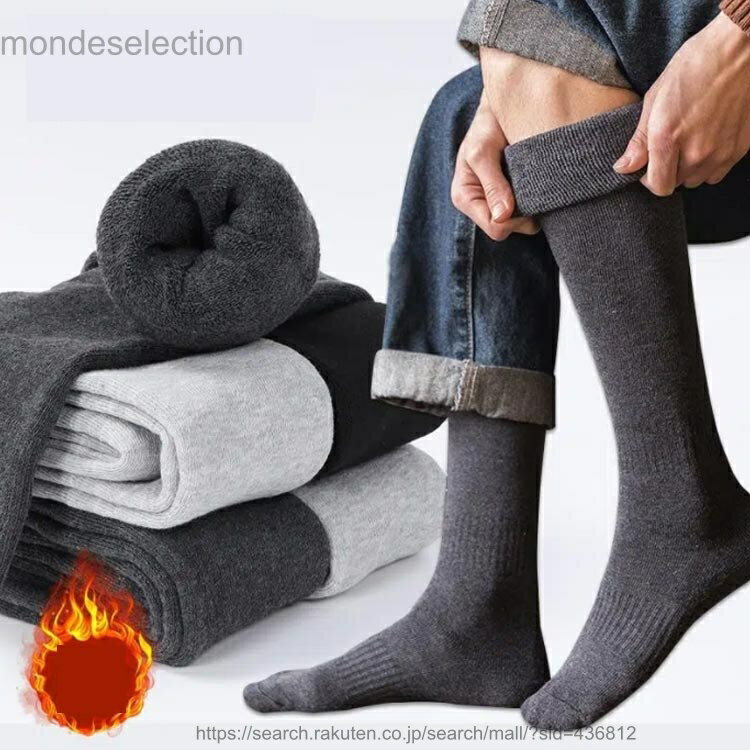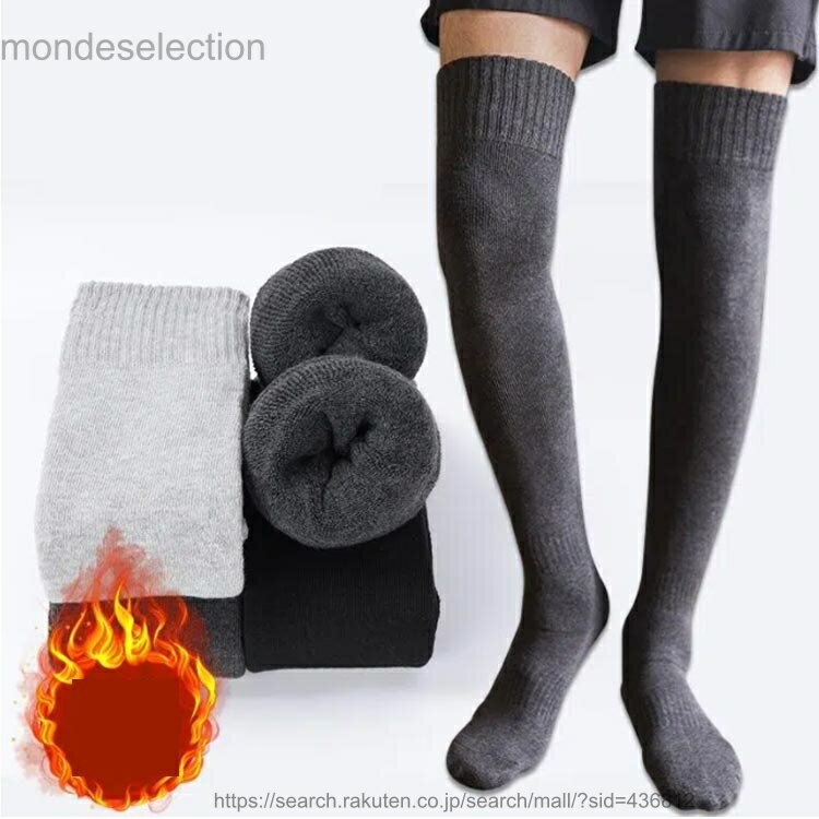 【送料無料】オーバーニーソックス 保温 裏起毛 靴下 厚手 冬用 ロングソックス メンズ 2足組 ビジネス スポーツ 寒さ対策 防寒 男性 冷え性 通勤 通学 アウトドア 保温性 暖かい