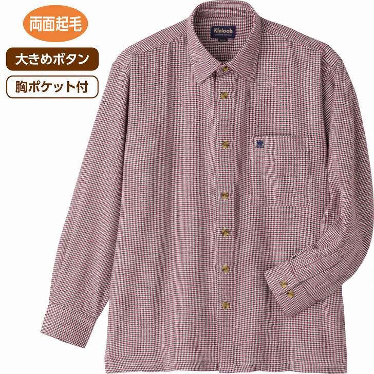 【楽天1位】 両面起毛袖丈ぴったりシャツ 大きめボタン M L LL 大きめボタン シニアファッション 70代 80代 90代 100歳 メンズ 紳士 用